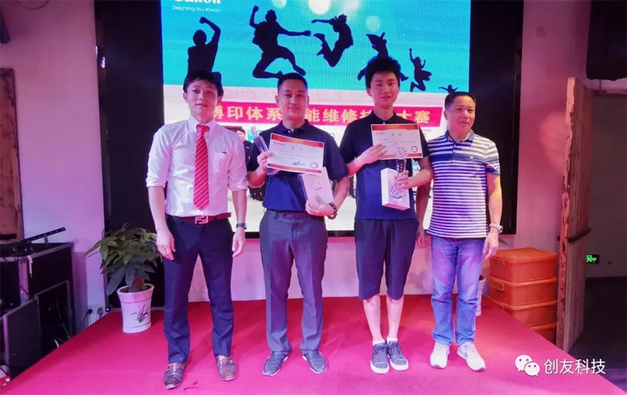 佳能(中国)售后部计划科的清水经理和创友集团邹和平董事长为获得亚军殊荣的选手颁奖